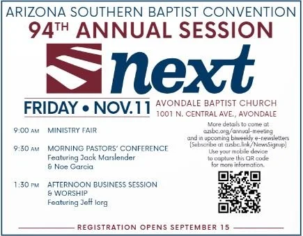 All VBS workers are invited to learn how to reach, serve, and teach children about the biblical truths that will be shared this summer. Churches that register ahead and attend will receive $250 in store credit at the training. Learn more and register at azmn.org/vbs